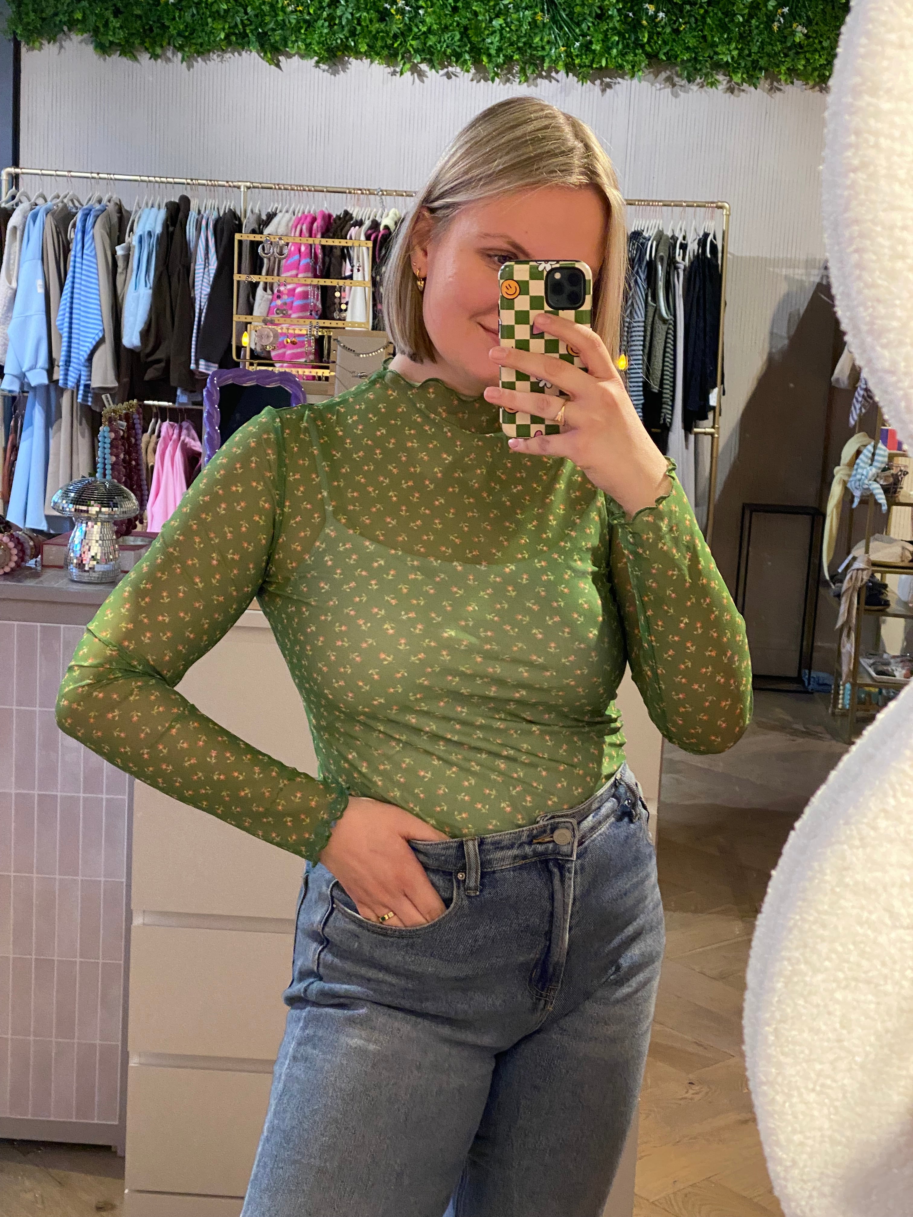 Mesh top bloemen groen