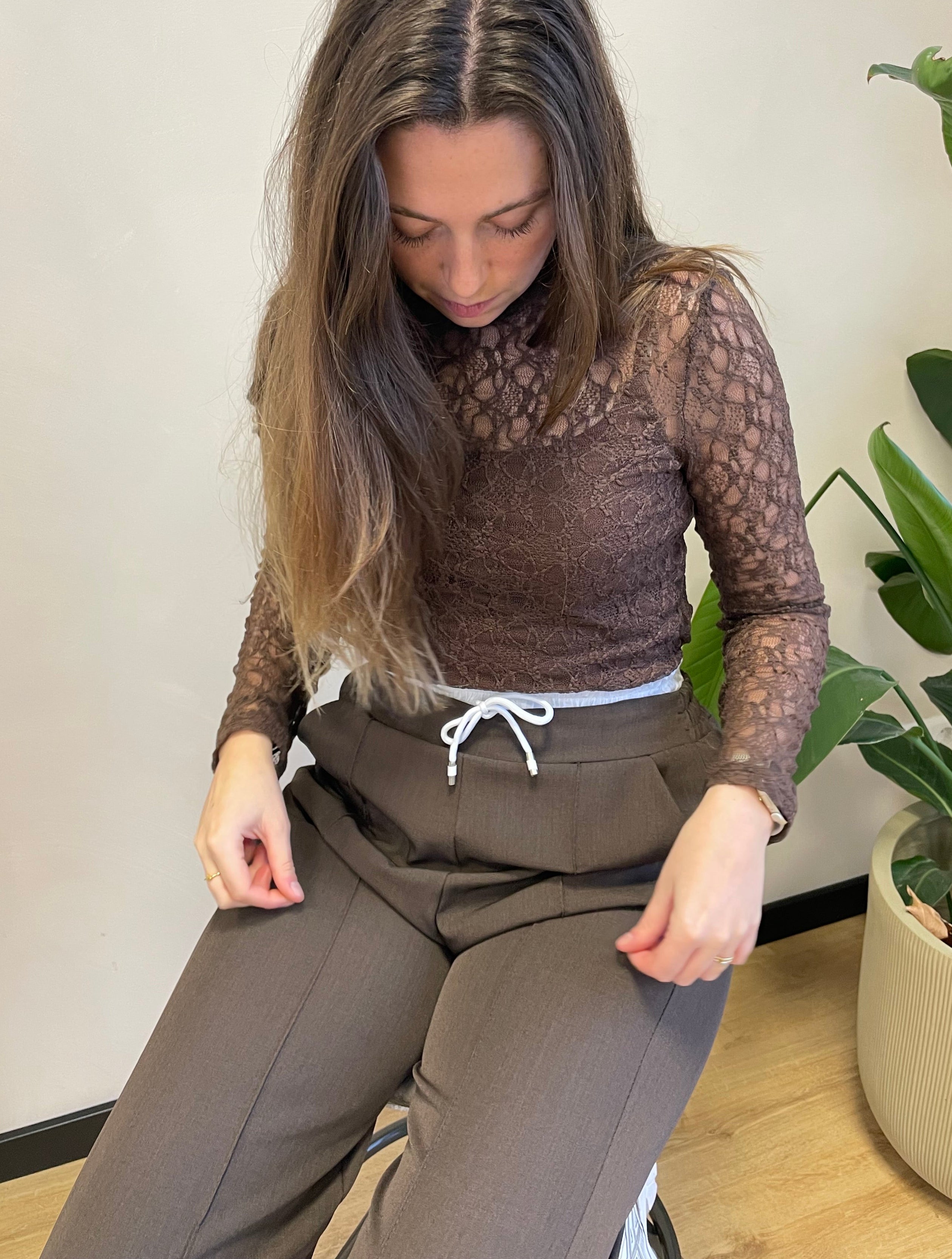 Pantalon bruin witte boord