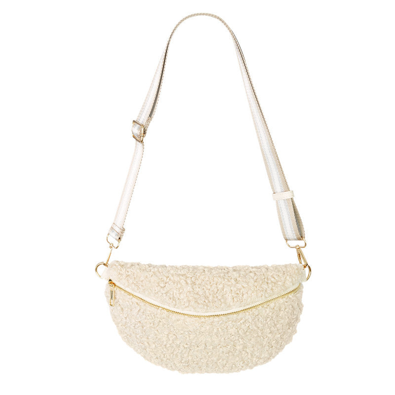 Of je nu gaat shoppen, boodschappen doet of een wandeling maakt met de kinderen, deze teddy heuptas houdt je handen vrij en zorgt ervoor dat je belangrijke spullen zoals je telefoon, sleutels en portemonnee altijd bij de hand hebt. De zachte teddy stof geeft de tas een trendy uitstraling die perfect past bij jouw alledaagse look. Deze teddy heuptas is een echte musthave met de opvallende tasriem!