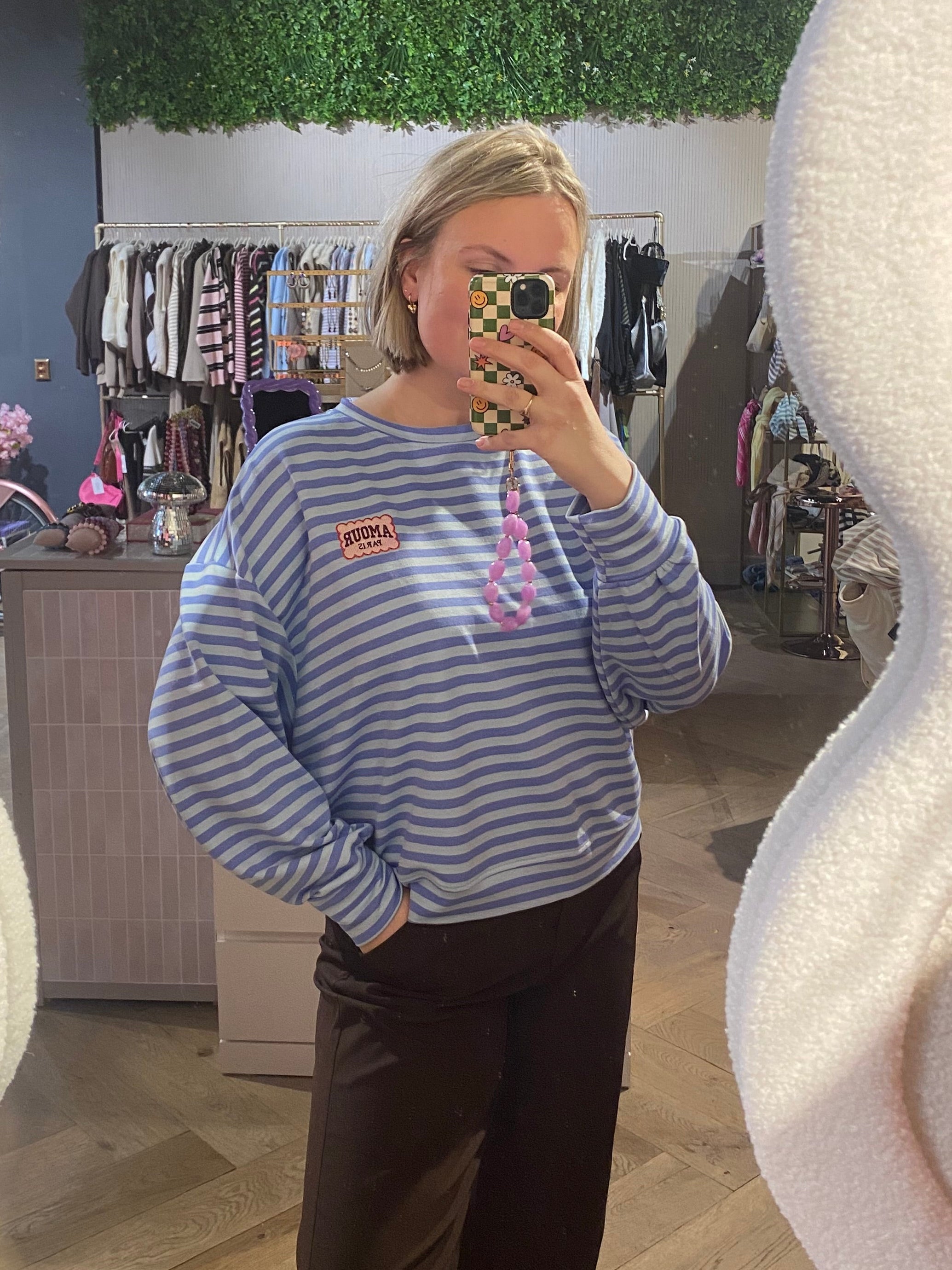 Amour sweater stripes blauw