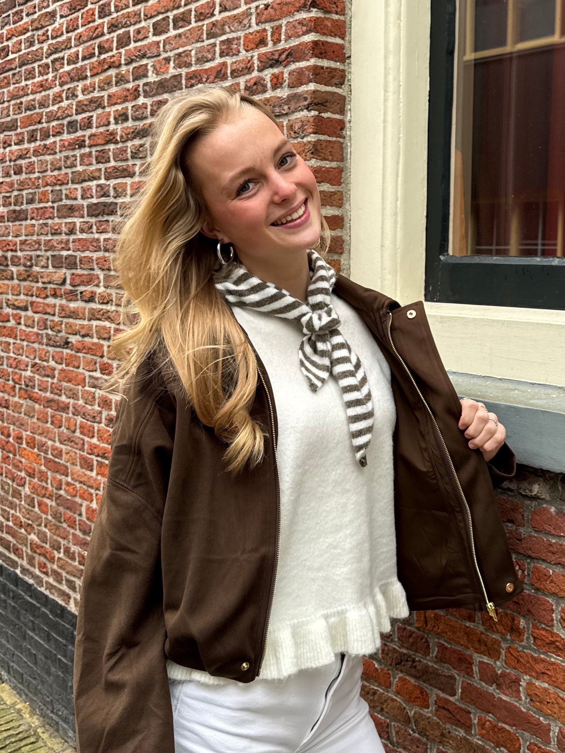 Deze zachte shortsleeve trui is dé musthave voor dit voorjaar! De pastel tinten zijn helemaal in; kies jij voor licht roze of beige? Super leuk te combineren met een kantje eronder. One size; te dragen t/m een maat 42.