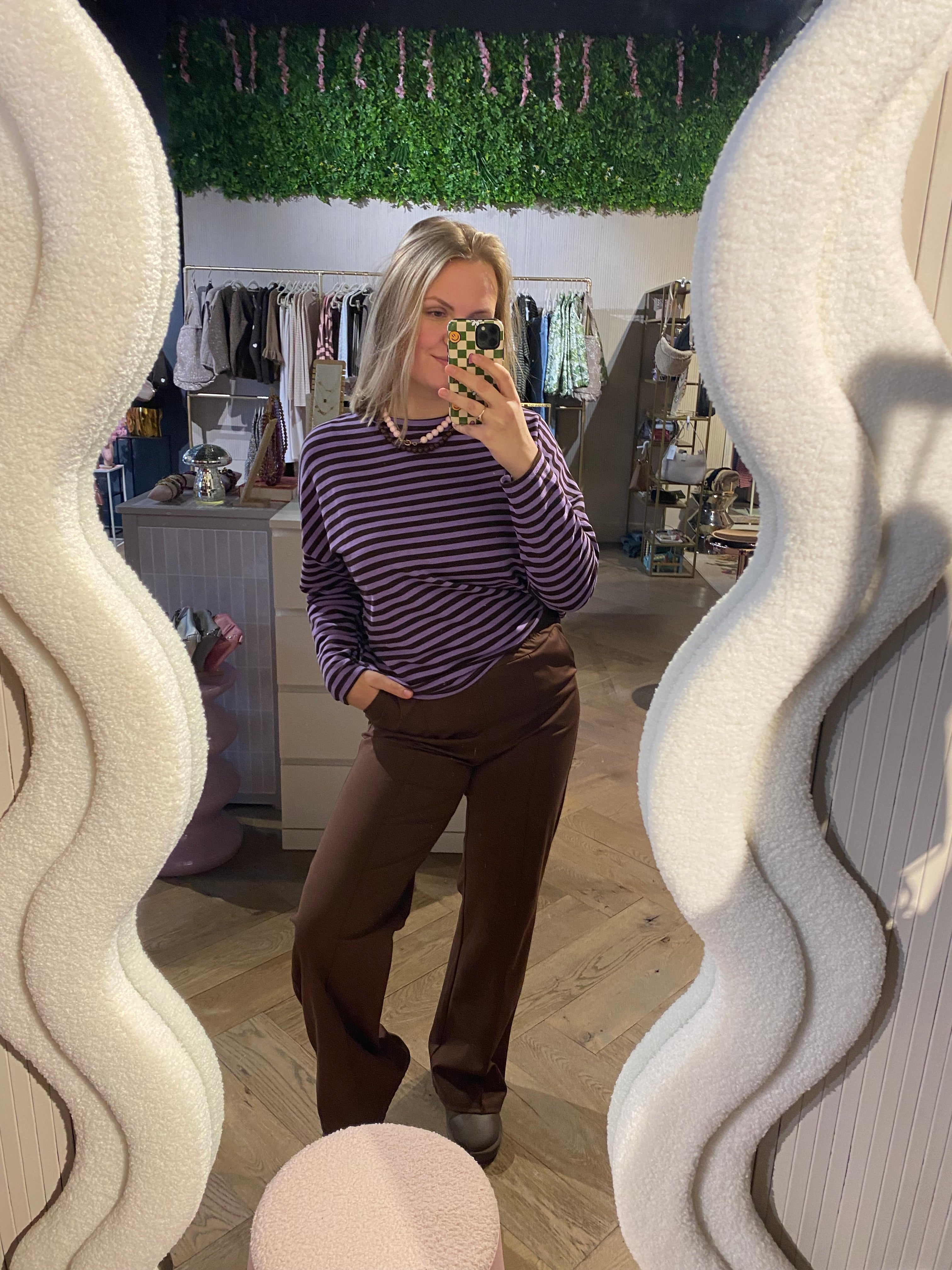 Sweater streep paars/bruin