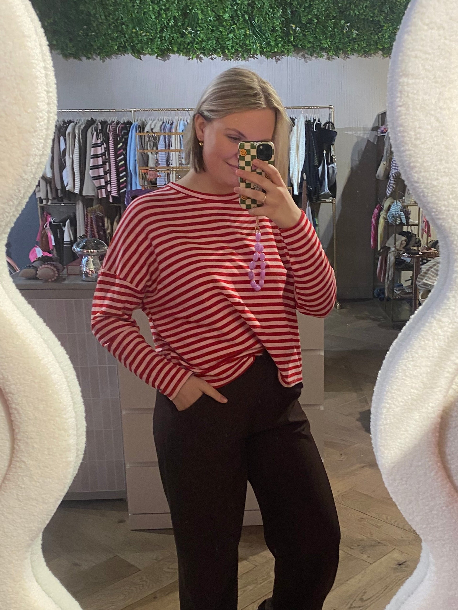 Sweater striped rood/roze